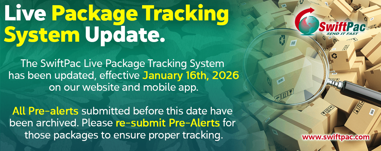 Request the service by PRE ALERT or at any SwiftPac Office. Invoice Must be provided.